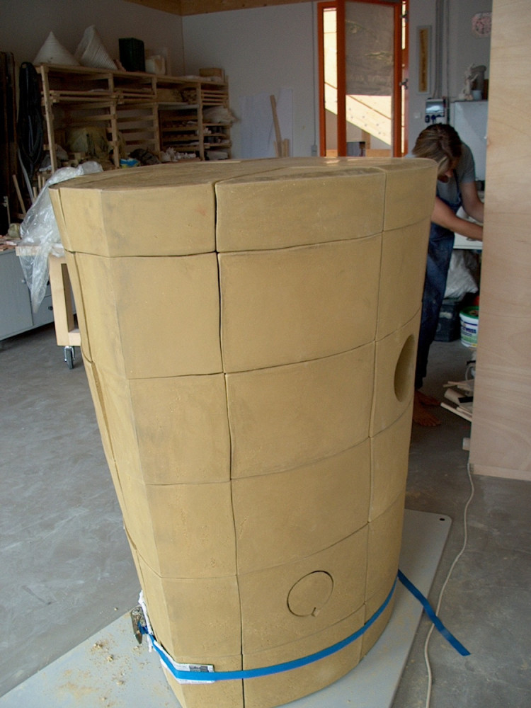 Auf Anfrage stelle ich Kachelöfen her. Dabei wird der geplante Ofen zunächst als Modell hergestellt. Die Herstellung geschieht mir der "Überschlagtechnik"