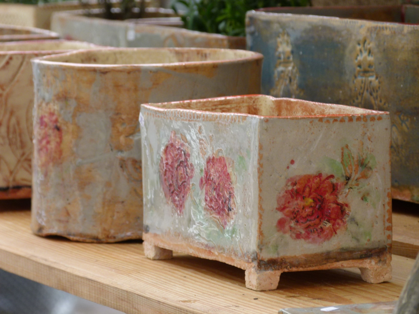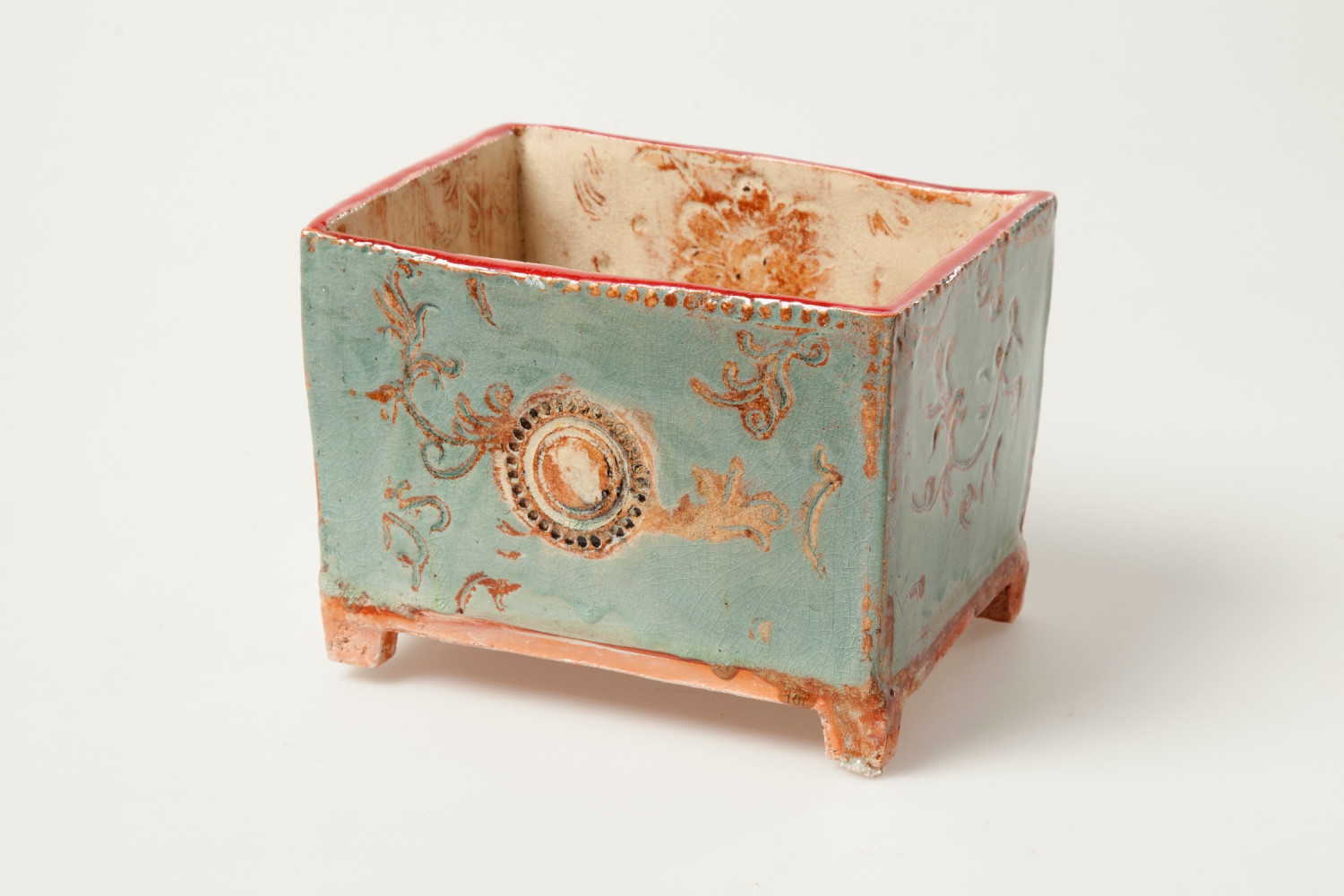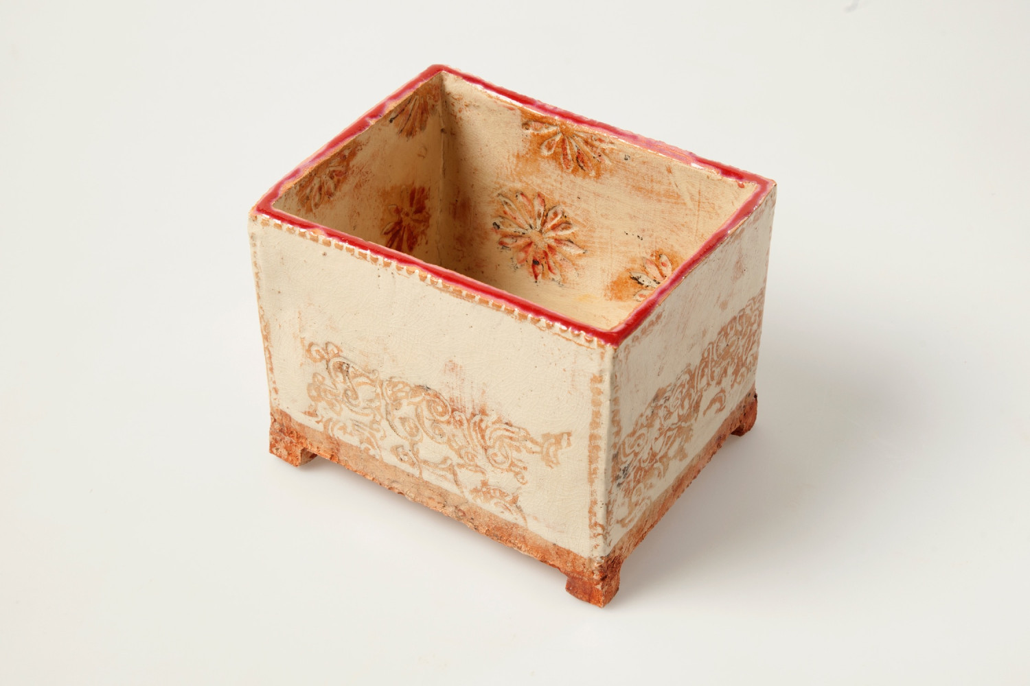 Die Verzierungen variieren, je nach Jahreszeit, Stimmung in mir, Impulsen von Außen und Innen. Alle Kästchen sind Einzelstücke. Alle werden aus Terracotta-Steinzeugton gefertigt und bei 1045 Grad C und 1080 Grad C gebrannt.